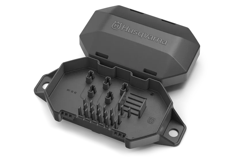 Mimo sezóny je upokojujúce vedieť, že inštalačné príslušenstvo vašej robotickej kosačky na trávu je chránené pred prírodnými živlami. Tento uzavretý ochranný box pre konektory Automower® od spoločnosti Husqvarna je navrhnutý pre bezpečné uloženie konektorov, koncov vodičov a kotevných skrutiek a chráni ich pred vlhkosťou, dažďom, ľadom a snehom. Možnosť pohodlne uložiť ohraničujúce a navádzacie vodiče tiež pomáha udržiavať váš trávnik vždy uprataný.