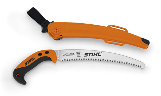 Zahnutá čepeľ pre rezanie v korunách stromov so zníženou námahou. Vymeniteľná čepeľ dĺžky 27 cm.